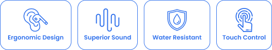 Touch controls to play, pause, adjust volume, skip tracks, answer calls, or activate your voice assistant.